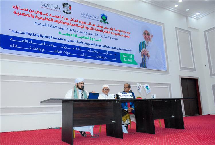 نظمت جامعتا عدن والوسطية الشرعية للعلوم الإسلامية والإنسانية صباح اليوم الخميس 23 يناير 2025م في رحاب كلية الآداب بجامعة عدن الندوة العلمية الدولية "المفكر الإسلامي العلامة الدكتور أبوبكر العدني بن علي المشهور.. منهجيته الوسطية وأفكاره التجديدية" تحت شعار (من أجل الاستفادة من تراث علماء الأمة في معالجة تحديات الواقع ومشكلاته)، بمشاركة واسعة لعدد من وكلاء الوزارات، وممثلي عن السلطة المحلية بمحافظتي عدن وأبين، ونواب رئيس الجامعة، وعمداء الكليات، ونواب العمداء، وأساتذة الجامعتين، والمشائخ ورجال الدين، والصحفيين، والنشطاء، والمهتمين.وفي مستهل الندوة العلمية التي حظت برعاية كريمة من دولة رئيس الوزراء الدكتور/أحمد عوض بن مبارك، ألقى رئيس جامعة عدن الأستاذ الدكتور/الخضر ناصر لصور كلمة أكد فيها على أهمية هذه الندوة التي تأتي في إطار نشاط جامعة عدن الأكاديمي ورسالتها الاجتماعية والعلمية والأدبية بعيدًا عن أي استقطابات أو مناكفات، وإن الجامعة منبر علمي تحرص على نشر ثقافة السلام والتآخي والتآلف وإبراز دور العلماء والمفكرين، مشيرًا بأن العلامة المشهور قد أسهم بشكل كبير بإنتاج فكري غزير يدعو إلى الاعتدال والدعوة إلى الله بالحكمة في الوقت الذي نأى كثير من المفكرين الإسلاميين عن طرح هذه المسائل لأسباب عديدة.وقال إن هذا النشاط العلمي يُعد خطوة هامة نحو تعزيز العلاقات الأكاديمية والبحثية والتعليمية بين جامعتي عدن والوسطية الشرعية للعلوم الإسلامية والإنسانية، بما يعود بالفائدة على الطلاب والباحثين، منوهًا بإن جامعة عدن تحرص على الاحتفال بالعلماء وتحيي أفكارهم التي أسهموا من خلالها في نهضة الأمة وتقدمها، وجعلها منارة يهتدى بها، مبينًا إن العلامة المشهور هو ابن جامعة عدن الذي تخرج منها في عام 1976م من كلية التربية والآداب، وحصل منها على الدكتوراه الفخرية، ونظرًا لارتباطه الوثيق فإن جامعة عدن ستعمل على تسمية إحدى القاعات الكبرى باسم العلامة المشهور تقديرًا لدوره التنويري وإنتاجه الفكري الكبير الذي شكل نقطة مضيئة في سماء المعرفة التي نهتدي بها.فيما أشار الاستاذ الدكتور/خالد عمر باسليم وكيل وزارة التعليم العالي والبحث العلمي أن الوزارة تشجع كثيرًا مثل هذه الأنشطة العلمية والفكرية وما تمثله من دراسة عميقة لأحد العلماء في بلادنا وما بذله من جهود طيلة حياته في تكريس منهج الوسطية والاعتدال الذي جاء به ديننا الحنيف والسنة النبوية، مشيدًا بالتعاون بين جامعتي عدن والوسطية في تنظيم مثل هذه الفعاليات، ناقلًا لجميع المشاركين تحيات وزير التعليم العالي والبحث العلمي الذي كان حريصًا للمشاركة فيها.وفي كلمة للدكتور/عبدالله عبدالقادر العيدروس رئيس جامعة الوسطية الشرعية، أكد خلالها إن هذه الندوة تأتي لتجدد التأكيد لحاجة مجتمعنا الإسلامي وواقعنا المعاصر إلى البحث عن السبل والحلول لكثير من المشكلات ومواجهة معاول الهدم التي تنخر في عضد مجتمعنا وتسعى إلى تفتيته، ووفقًا لأهداف الندوة ومحاورها جاءت الأوراق العلمية لتظهر للقارئ والمهتم جوانب من عطاءات ونتاجات هذه العلم الإسلامي، معبرًا عن شكره وتقديره الكبيرين لقيادة جامعة عدن ممثلة بالأستاذ الدكتور/الخضر ناصر لصور رئيس الجامعة لجهوده المبذولة في الإعداد والتنظيم لهذه الندوة، ولكل من ساهم في إنجاحها.وأكدت كلمة أربطة التربية الإسلامية التي القاها الشيخ أبوبكر الهدار ، وكلمة مجلس مكتب الموجه العام التي ألقاها الأخ نزار أبوبكر المشهور، على أهمية وأهداف الندوة في إبراز منهجية الوسطية عند الداعية الإسلامي الدكتور أبوبكر المشهور وأفكاره التجديدية، والدور الواجب في استلهام أفكاره وتجسيدها في واقعنا المعاش، وعلى أهمية الموروث العلمي والفكري وما تركه من وفرة وغزارة في إنتاجه وخطبه ومحاضراته ومؤلفاته، والتي تهدف إلى تعزيز الوعي لدى المجتمع المسلم في مواجهة كافة التحديات والمخاطر والحث على التمسك بالقرآن الكريم والس