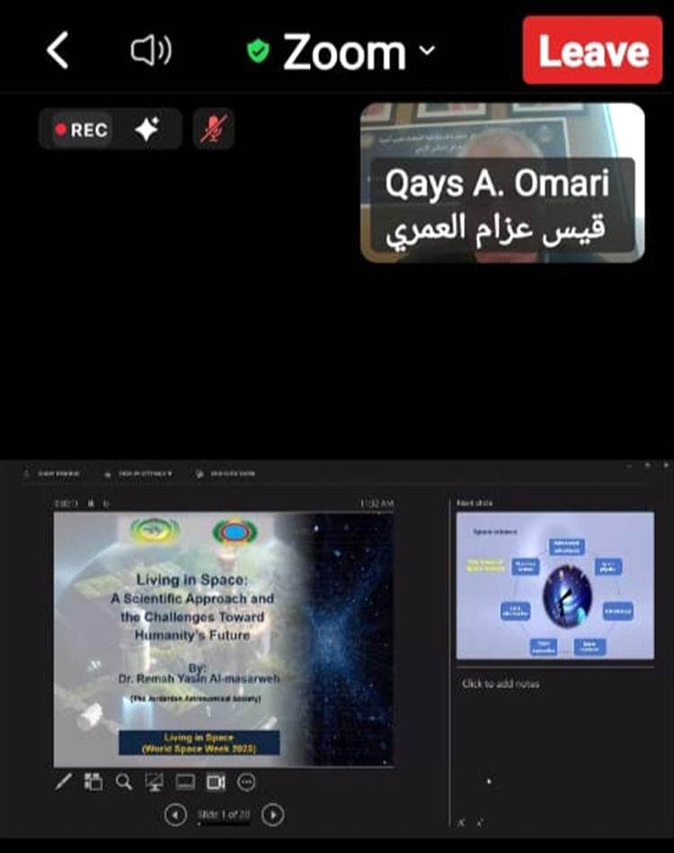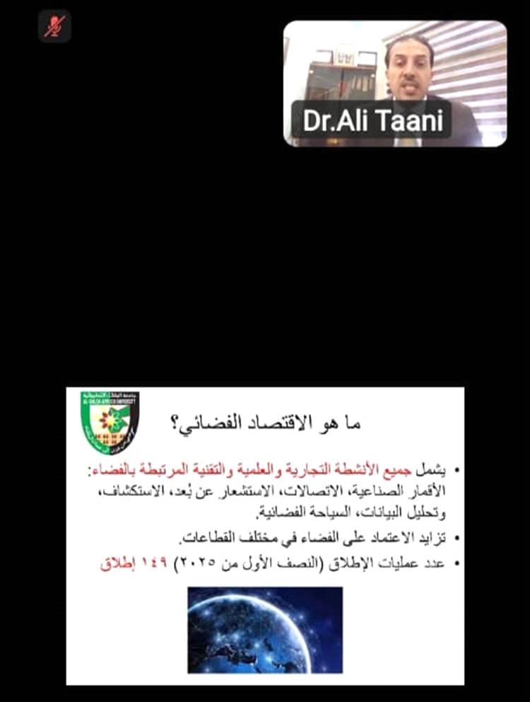 شارك مركز العلوم والتكنولوجيا بجامعة عدن ممثلًا بالأستاذ الدكتور/رخسانه محمد إسماعيل مدير المركز وعضو مجلس الأمناء في المركز الإقليمي لعلوم وتكنولوجيا الفضاء، في الندوة العلمية المقامة بمناسبة الأسبوع العلمي للفضاء، والتي جرت عبر تقنية الاتصال المرئي بمشاركة نخبة من العلماء والخبراء العرب والدوليين في مجال علوم وتكنولوجيا الفضاء.وتناولت الندوة عددًا من الموضوعات العلمية المتقدمة، شملت عديد من المفاهيم التي أكدت على الاستقلالية والابتكار من أجل استدامة الفضاء، والعيش في الفضاء، ونهج العلوم والتحديات نحو مستقبل الإنسان، وظروف العيش على متن محطة الفضاء الدولية، والاقتصاد الفضائي والفرصة القادمة للعالم العربي، والقمر وتحديات استيطانه، إضافة إلى عديد من المحاور العلمية ذات الأهمية في تطوير هذا القطاع الحيوي.وشارك في تقديم أوراق العمل نخبة من الأكاديميين من جامعة سان دييغو وجامعة العلوم والتكنولوجيا الأردنية والجمعية الفلكية الأردنية والمركز الجغرافي الملكي والمركز الإقليمي لعلوم وتكنولوجيا الفضاء، وقد أكدت الندوة على أهمية تعليم الطلاب وتنمية مهارات الابتكار والبحث العلمي باستخدام أحدث التقنيات في مجال علوم الفضاء، باعتبارها ركيزة أساسية لمستقبل التنمية المستدامة في العالم العربي.