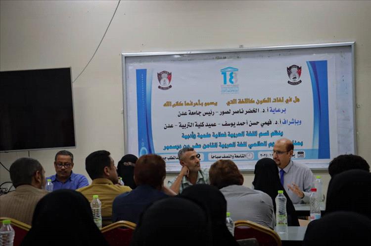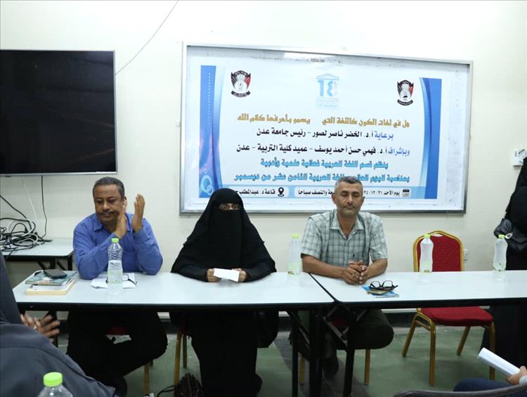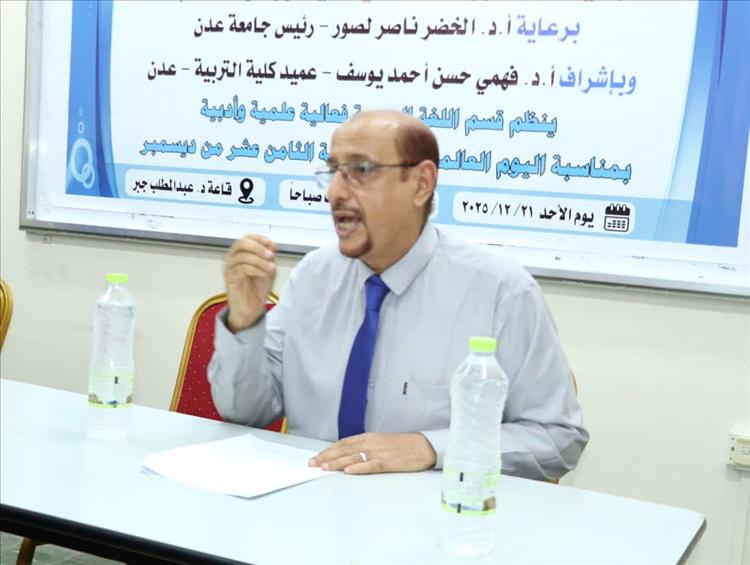 برعاية رئيس جامعة عدن الأستاذ الدكتور/ الخضر ناصر لصور، وعميد كلية التربية الأستاذ الدكتور/فهمي حسن أحمد يوسف، احتضنت قاعة الفقيد الأستاذ الدكتور/عبدالمطلب جبر في كلية التربية بجامعة عدن، فعالية مميزة نظمها قسم اللغة العربية بمناسبة اليوم العالمي للغة العربية.افتتحت الفعالية بكلمة لعميد الكلية الذي رحب بالحاضرين وأشاد بجهود قسم اللغة العربية في تنظيم هذه الاحتفالية، مؤكدًا أن اللغة العربية هي ركيزة أساسية للهوية الثقافية والوطنية، وداعيًا إلى تعزيز استخدامها في العملية التعليمية والأنشطة الطلابية المختلفة.تلتها كلمة نائب العميد للشؤون الأكاديمية الدكتور/الخضر عبدالله لصور، الذي استعرض جهود العمادة في دعم اللغة العربية وتطوير البرامج الأكاديمية والمقررات، مشيرًا إلى أهمية مشاركة الطلاب وأعضاء هيئة التدريس في الأنشطة الثقافية التي تعزز مكانة لغتهم الأم وتشجع على الإبداع في التعبير العلمي والأدبي.تضمن البرنامج محاضرات علمية ألقاها كل من الدكتور/سالم السلفي، والدكتور/عبده الدباني، والدكتورة/ميادة الأغبري، تناولت مختلف جوانب اللغة العربية وأبرزت دورها في نقل العلوم والثقافة عبر العصور.كما تخلل الفعالية فقرات أدبية متنوعة، حيث ألقى كل من الدكتور/علي الزبير، والطالبان محمد ناصر قيس وحنين الوحش، قصائد شعرية، وشاركت الطالبتان تقوى صبري وسحر بقصة ومقالة أدبية، بينما قدمت الطالبتان تقوى وحنين مشهدًا تمثيليًا قصيرًا أضاف جوًا من التفاعل والإبداع إلى الفعالية.حضر الحفل عدد من رؤساء الأقسام بالكلية، وأعضاء هيئة التدريس، والطلاب، وعدد من المهتمين بالشأن الثقافي واللغوي، مما أضفى على الفعالية طابعًا متميزًا وحافزًا لتعزيز الاهتمام باللغة العربية في البيئة الجامعية.