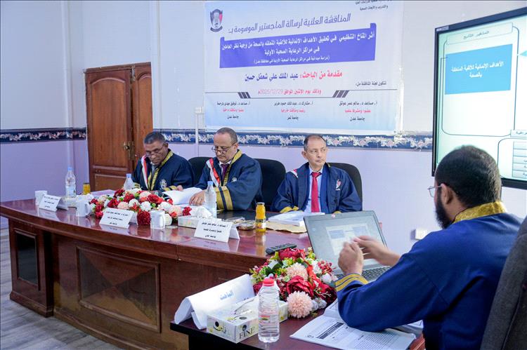 في أجواء علمية وأكاديمية متميزة، وبحضور رئيس جامعة عدن الأستاذ الدكتور/الخضر ناصر لصور، دشن مركز الدكتور غرامة للإدارة الصحية والدراسات العليا والتدريب والبحث بجامعة عدن، صباح اليوم الإثنين 29 ديسمبر، المناقشة العلنية لأول رسالة ماجستير بالمركز، والمقدمة من الباحث/عبدالملك علي شعفل حسين، والموسومة بـ أثر المناخ التنظيمي في تحقيق الأهداف الإنمائية للألفية المتعلقة بالصحة من وجهة نظر العاملين في مراكز الرعاية الصحية الأولية.. دراسة ميدانية في مراكز الرعاية الصحية الأولية بمحافظة عدن ، في خطوة أكاديمية تعد إضافة نوعية لمسار البحث العلمي في مجالي الإدارة والصحة.وفي مستهل جلسة المناقشة العلمية، قدم الباحث عرضًا موجزًا لرسالة الماجستير، استعرض خلاله الإطار العام للدراسة، والفصول والمباحث التي اشتملت عليها، وأهميتها العلمية والعملية، إلى جانب الأهداف التي سعت لتحقيقها، والفرضيات التي بنيت عليها، والمنهج العلمي المتبع، والأدوات البحثية المستخدمة، فضلًا عن أبرز النتائج التي توصلت إليها الدراسة، والصعوبات والتحديات التي واجهته أثناء تنفيذ البحث الميداني ودراسة الحالة في مراكز الرعاية الصحية الأولية بمحافظة عدن.وتكونت لجنة المناقشة والحكم من الأستاذ مشارك الدكتور/عبدالملك حمود هزبر، المناقش الخارجي من جامعة تعز رئيسًا للجنة، وعضوية الأستاذ مساعد الدكتور/سالم عمر عوتق المشرف العلمي على الرسالة، والأستاذ مساعد الدكتور/توفيق مهدي بارحمة المناقش الداخلي، وبعد نقاش علمي مستفيض، أقرت اللجنة قبول الرسالة ومنح الباحث درجة الماجستير، مثمنة الجهود العلمية المتميزة التي بذلها الباحث، وما تضمنته الرسالة من نتائج وتوصيات من شأنها الإسهام في إثراء البحث العلمي، وخدمة الباحثين والمؤسسات البحثية والمنظمات المختلفة، وإغناء المكتبات الجامعية.وفي هذا السياق أدلى مدير مركز الدكتور غرامة للإدارة الصحية والدراسات العليا والتدريب والبحث الدكتور/عبدالرحمن اللحجي بتصريح خاص، أشار فيه إلى أن هذه الرسالة تعد أول عنوان في علوم الإدارة يتناول قضية ذات صلة مباشرة بالقطاع الصحي في اليمن، وهو ما يعكس أهمية الدور الذي يضطلع به المركز في توجيه أبحاثه ودراساته نحو قضايا الصحة وآثارها الإدارية والتنظيمية، وأوضح أن المركز يولي اهتمامًا خاصًا باستقطاب منتسبي القطاع الصحي، ويتطلع إلى تعزيز الشراكة في برامج الدراسات العليا والتدريب مع المجلس اليمني للاختصاصات الطبية بوزارة الصحة العامة والسكان، ومع المنظمات الدولية، وردم الفجوة القائمة بما يسهم في بناء علاقات فاعلة وقوية لخدمة القطاع الصحي والمستفيدين من أنشطته، مثمنًا في الوقت ذاته دعم رئاسة جامعة عدن وحرصها المستمر على تطوير المركز وبرامجه الأكاديمية.وشهدت المناقشة العلمية حضور عميد كلية العلوم الإدارية الدكتور/ياسر باسردة، ونواب العميد، ونائب مدير مركز الدكتور غرامة للإدارة الصحية والدراسات العليا والتدريب والبحث، إلى جانب عدد من الباحثين وطلاب الدراسات العليا بالجامعة، وزملاء وأقارب الباحث، الذين أشادوا بمستوى الرسالة وأهميتها، متمنين للباحث مزيدًا من التوفيق والنجاح في مسيرته العلمية والعملية.