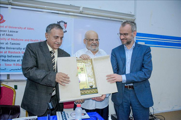 اختتمت اليوم الخميس 26 مارس في كلية الطب والعلوم الصحية بجامعة عدن الفعاليات العلمية المشتركة التي نُظمت بالشراكة مع كلية الطب بجامعة روستوك الألمانية، والتي استهدفت في يومها الثالث أساتذة الجراحة وطلاب سنة الامتياز والدراسات العليا، وجاءت هذه الفعاليات برعاية كريمة من رئيس الجامعة الأستاذ الدكتور/الخضر ناصر لصور، وإشراف مباشر من عميد الكلية الدكتور/عبدالحكيم التميمي، وبحضور واسع لعمداء الكليات الطبية، ونواب العمداء، ورؤساء الأقسام العلمية، ومديري عدد من الإدارات في الكليات الطبية.وامتدت الفعاليات العلمية على مدى ثلاثة أيام متتالية ضمن برنامج علمي متكامل هدف إلى تعزيز التبادل المعرفي، ورفع كفاءة التأهيل الطبي، وإطلاع الكادر التدريسي والطلاب على أحدث المستجدات والتقنيات في مجالات الطب والجراحة، بما يسهم في ربط الجانب النظري بالتطبيقات العملية الحديثة، وتخللت الفعالية كلمات رسمية أكدت في مجملها على أهمية هذه الشراكة العلمية، حيث عبر رئيس الجامعة في كلمة له بالمناسبة عن اعتزازه بنجاح هذه الفعاليات، مشيدًا بجهود عمادة الكلية في حسن التنظيم والترتيب، ومثمّنًا حضور ومشاركة الفريق الألماني من جامعة روستوك، وما يعكسه ذلك من حرص مشترك على تطوير اتفاقيات التعاون العلمي بين الجانبين. من جانبه أكد عميد الكلية في كلمته نجاح البرنامج العلمي، مشددًا على أهمية استمرار هذه الأنشطة، إلى جانب تعزيز وتوطيد العلاقات مع المستشفيات الحكومية والخاصة بما يسهم في تطوير التدريب الطبي والارتقاء بمستوى الخدمات الصحية.وشهدت الفعالية تقديم عدد من المحاضرات العلمية المتخصصة، حيث استهل الدكتور/مارك فيليب استشاري جراحة الجهاز الهضمي في الجراحة العامة بالمستشفى الجامعي بجامعة روستوك، البرنامج بمحاضرة تناولت أمراض السمنة والغدد وفتق الحجاب الحاجز ، مستعرضًا أبرز الجوانب التشخيصية والعلاجية الحديثة في هذا المجال. كما قدم الدكتور/أحمد الوالي، استشاري جراحة الجهاز الهضمي بالمستشفى الجامعي، محاضرة بعنوان آخر التحديثات في جراحة الجهاز الهضمي ، ناقش خلالها أبرز المستجدات العلمية والتقنيات الجراحية المتقدمة.وتخلل الفعالية استعراض مؤثر لسيرة الفقيد الأستاذ الدكتور/علي أحمد علي الوالي، عميد كلية الطب والعلوم الصحية الأسبق، حيث قُدمت لمحة تاريخية عن حياته الحافلة بالعطاء، وإنجازاته الإدارية والأكاديمية، ودوره البارز خلال فترة توليه عمادة الكلية. وتحدث في هذه الفقرة عدد من زملائه وأكاديميي الجامعة، من بينهم رئيس الجامعة الأستاذ الدكتور/الخضر ناصر لصور، والأستاذ الدكتور/سوسن باخبيرة رئيس مجلس الاعتماد الأكاديمي وضمان جودة التعليم العالي، والأستاذ الدكتور/رجاء عبده أحمد عميد كلية التمريض، والأستاذ الدكتور/أنيسة عبود مدير مركز التطوير الأكاديمي، والأستاذ الدكتور/أحلام هبة الله رئيس وحدة الجودة والاعتماد الأكاديمي بكلية طب الأسنان، والأستاذ الدكتور/ مهجت أحمد علي عبده عميد كلية طب الأسنان الأسبق، والدكتور/محمد شيخ نائب عميد كلية الطب لشؤون المستشفيات، والدكتور/سعيد إسماعيل عضو الهيئة التدريسية في كلية الطب، والأستاذ/حسين حسن بارحيم امين كلية الطب، والأستاذ/عبدالله بن حريز مدير إدارة التسجيل في كلية الطب مدير مركز السنة التحضيرية، مستحضرين مناقب الفقيد وسيرته العطرة، ودوره في تطوير الكلية وتعزيز علاقاتها الأكاديمية الدولية، لا سيما مع جامعة روستوك، وإسهاماته في تأسيس الكليات الطبية الثلاث ومركز الشفة الأرنبية بجامعة عدن، وتجديد اتفاقيات التبادل الأكاديمي. كما ألقى نجل الفقيد الدكتور/أحمد الوالي كلمة العائلة، عبر فيها عن شكر الأسرة لهذه اللفتة الوفائية.وفي ختام الفعالية قام رئيس الجامعة وعميد الكلية، بمعية شقيق الفقيد الدكتور/ عبدالرحمن الوالي، بتكريم رئيس جامعة روستوك، ومسؤول العلاقات الأكاديمية الألمانية اليمنية في الجامعة، وأعضاء الوفد من بينه