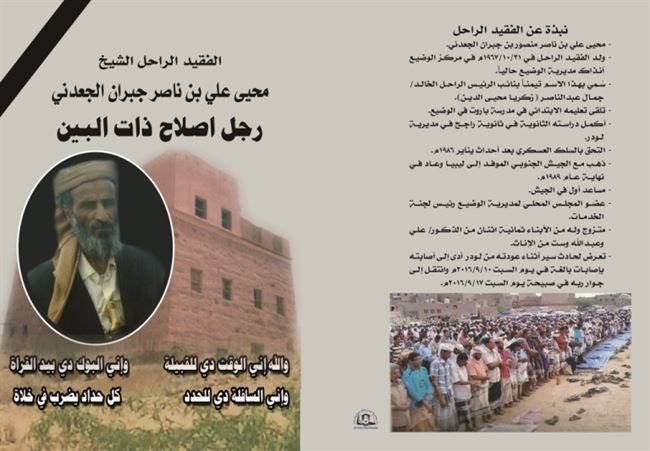 أصدرت دار جامعة عدن للطباعة والنشر كتيب تابين المرحوم محيى علي بن ناصر جبران الجعدني